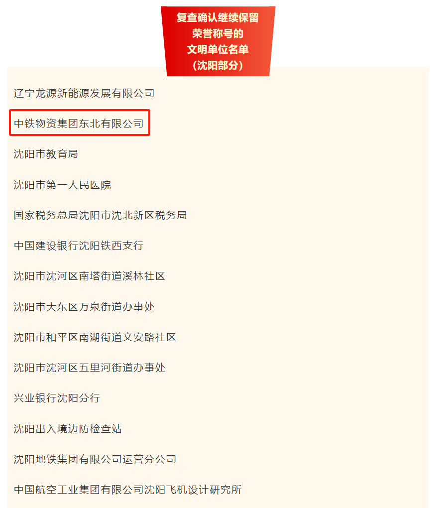 日前,全國精神文明建設(shè)表彰大會(huì)在北京召開。會(huì)上,《中央宣傳思想文化工作領(lǐng)導(dǎo)小組關(guān)于認(rèn)定命名第七屆全國文明城市、文明村鎮(zhèn)、文明單位和第三屆全國文明家庭、文明校園的決定》和《中央宣傳思想文化工作領(lǐng)導(dǎo)小組關(guān)于復(fù)查確認(rèn)繼續(xù)保留榮譽(yù)稱號(hào)的全國文明城市、文明村鎮(zhèn)、文明單位、文明家庭、文明校園的通報(bào)》發(fā)布。經(jīng)復(fù)查確認(rèn),中鐵物資東北公司繼續(xù)保留全國文明單位榮譽(yù)稱號(hào)。